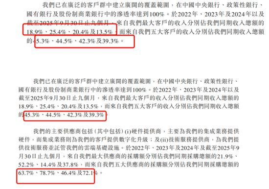 客户的高度集中进一步加剧了业绩的不确定性。2022年至2024年,宇信科技来自前五大客户的收入占比分别高达45.3%、44.5%及42.3%,且大部分为银行客户。这种结构使得公司业绩对主要客户依赖程度极大,若主要客户经营状况或合作关系生变,公司营收将面临巨大冲击。