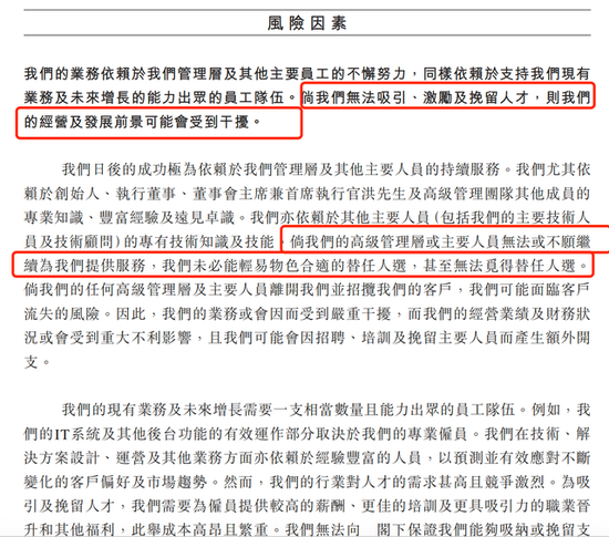 除了经营层面的挑战,宇信科技在招股书中还详尽披露了其面临的核心人才流失、管理层过度依赖、通胀推高成本、数据泄露隐患、股权集中损害中小股东利益及监管合规等多重风险。