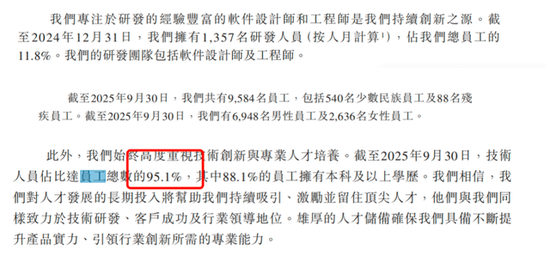 据妙投APP报道,宇信科技开启了裁员模式。公司总员工数从2023年的12547人下降至2024年的10811人,两年累计减员2337人。其中,技术人员从11915人降至10281人;更为关键的是,研发人员从1883人减至1357人,2024年报研发团队缩减超过500人。根据招股书显示,截至2025年9月30日,宇信科技共有9584名员工,技术人员占比达95.1%。经计算可知技术人员约9114人,也就是说,宇信科技2025年9个月共减员1227人。其中,技术人员减员1167人。